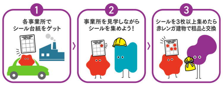 シールを3枚以上集めたら台紙を半田赤レンガ建物へ持っていこう。粗品と交換できるよ。 ※赤レンガ会場でもらえるシールは2枚までです。